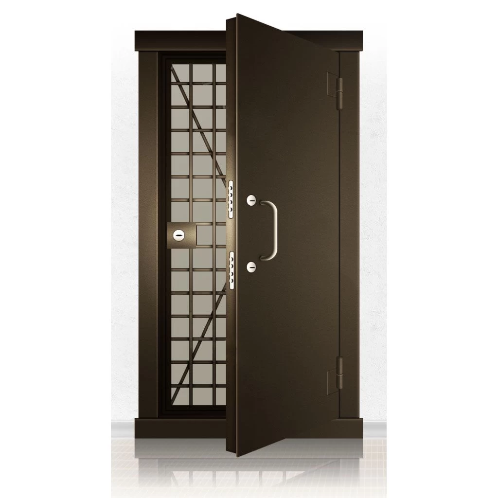 Металлические двери КХО и КХН представляют собой входные блоки, обладающие высоким уровнем взломостойкости и состоят из трех основных элементов: усиленного каркаса, сплошного металлического полотна и решетчатой двери. Дверной блок изготавливается из стального уголка 100*100 мм. Места крепления блока к стене цементируются и закрываются стальными наличниками шириной 40 мм. Крепеж заходит вглубь стены на 80 мм. В конструкции внешней створки монтируются ребра жесткости, для обшивки используется сталь толщиной не менее 3 мм. Внутренняя решетка изготавливается из прутка диаметром 16 мм. Размер ячеек решетки должен составлять не более 15 на 15 см. В точках пересечения прутья надежно приваривают друг к другу. В КХО и КХН необходимо поддерживать определенную температуру и влажность. Для этого внутреннее пространство глухой двери заполняется теплоизоляционным материалом, а по периметру двери приклеивается уплотнитель. Такие двери оборудуются замками с повышенным уровнем взломостойкости. Специализированные двери КХО и КХН в Купино могут быть оснащены сигнализацией, в конструкции могут быть проушины для навесного замка и элементами для опечатывания. Если идет речь о двери в комнату хранения оружия, в створке оборудуется окно для выдачи оружия и спец. средств, которое накрывается стальной дверцей.